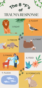 Tubuh manusia memiliki sistem bawaan untuk bertahan hidup. Sistem ini bekerja otomatis, jauh lebih cepat daripada pikiran. Dalam dunia psikologi dan regulasi sistem saraf, reaksi ini sering disebut sebagai 8F: Fight, Flight, Freeze, Fawn, Flop, Feed, Flock, Fornicate.